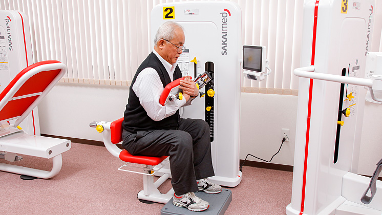 老化などにより、使われなくなってしまった筋肉を専用マシンで動かしながら、